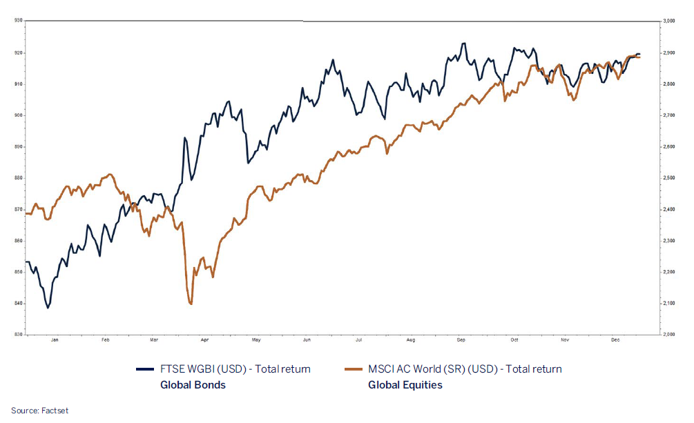 Now, with a full year’s perspective, it’s easier to appreciate how the seemingly disjointed events of 2025 ultimately worked together to lay a stronger foundation for markets. Volatility in the first half gave way to unexpectedly powerful equity gains in the second, as earnings revisions turned positive and interest rates declined. Diplomatic progress, even when incomplete, helped appease some of the world’s most entrenched risk premia. AI moved from promise to signs of being a material economic driver through the commencement of productivity gains, whilst central banks, most notably the US Federal Reserve, shifted toward accommodation, supporting valuations of both equities and fixed income securities, whilst reinforcing confidence in ongoing global economic growth. In this review, we walk you through the key developments that shaped 2025, outline the forces we believe will matter most in 2026, and share how we are positioning client portfolios for both the opportunities and risks that lie ahead.